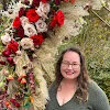 We used a dark and moody palette with quicksand roses, dried hydrangeas, dried grasses, burgundy peonies, rose hips, lingon berries, eucalyptus and lots of hanging amaranthus for a romantic draping effect. We incorporated the Celtic theme with acacia and blue thistle.